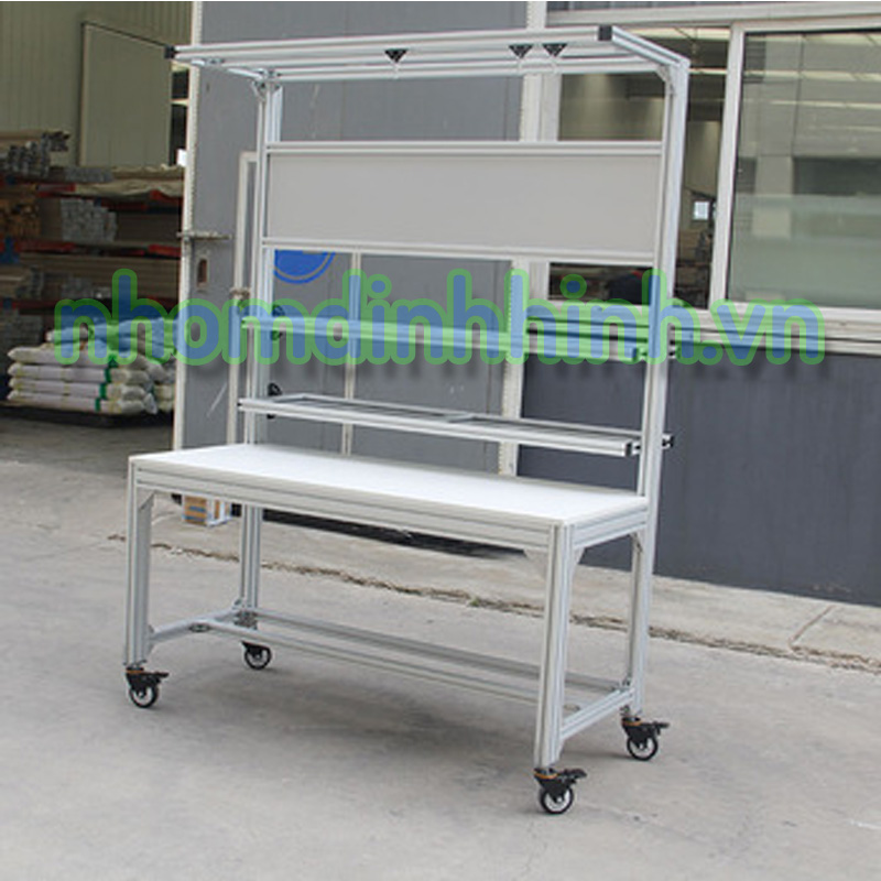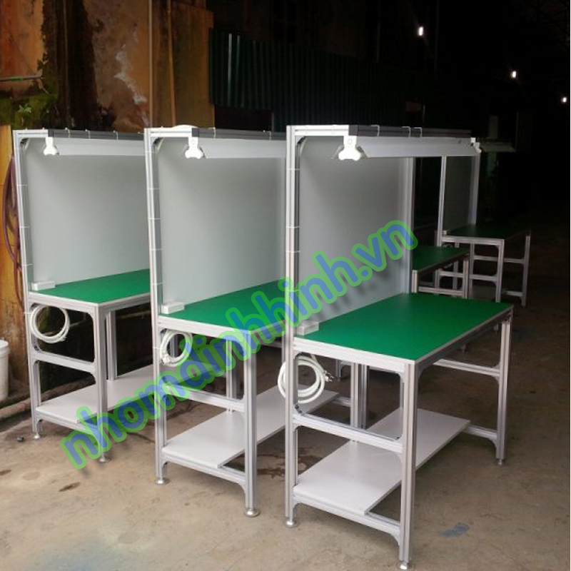 Bàn thao tác bằng khung nhôm định hình được dùng rất nhiều trong các nhà máy sản xuất.